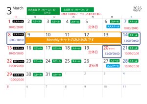 2/21(土)お休み予定でしたが 通常営業となります。10:00/20:00